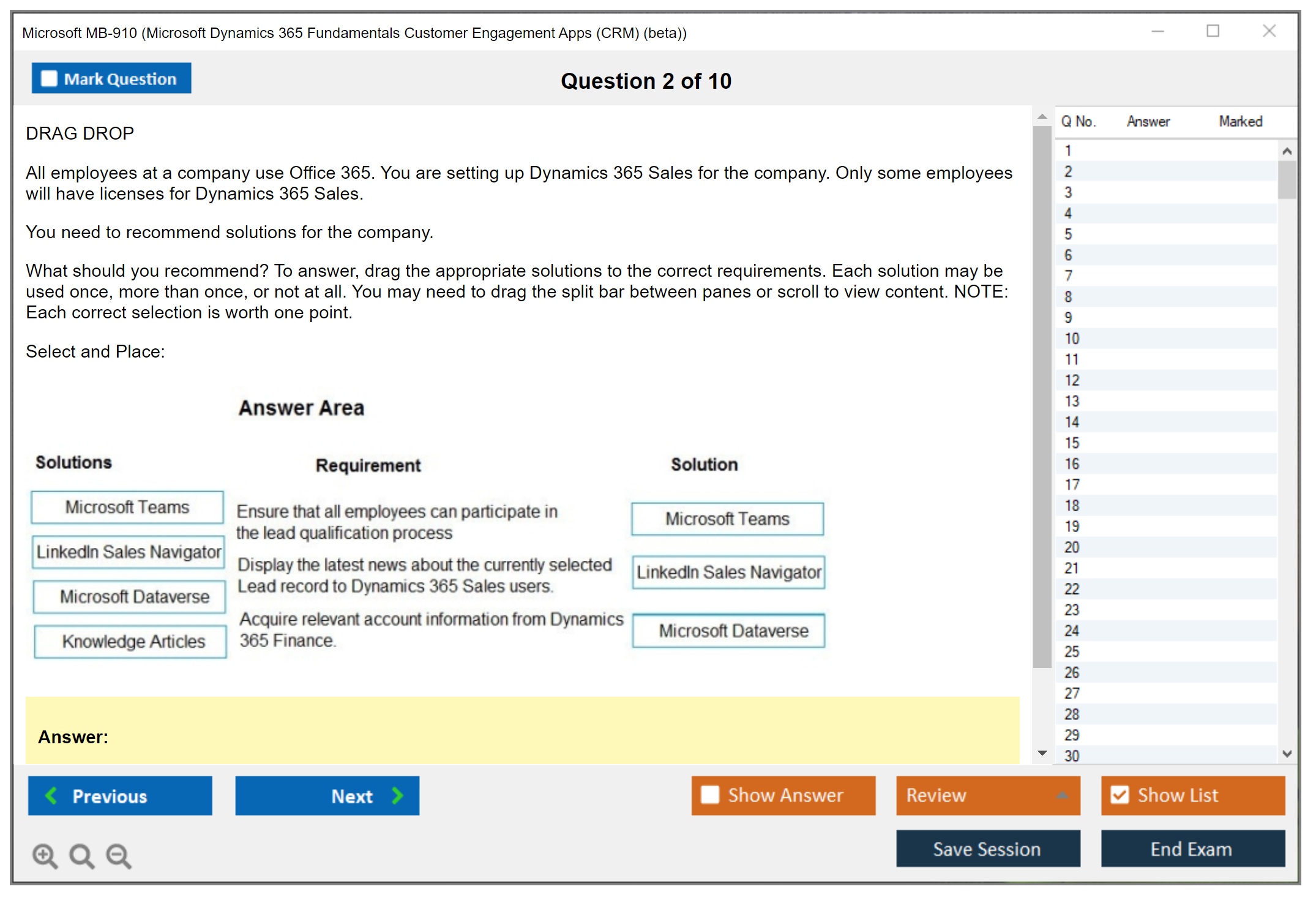 What are the Sample Questions of Microsoft MB-910 Exam?