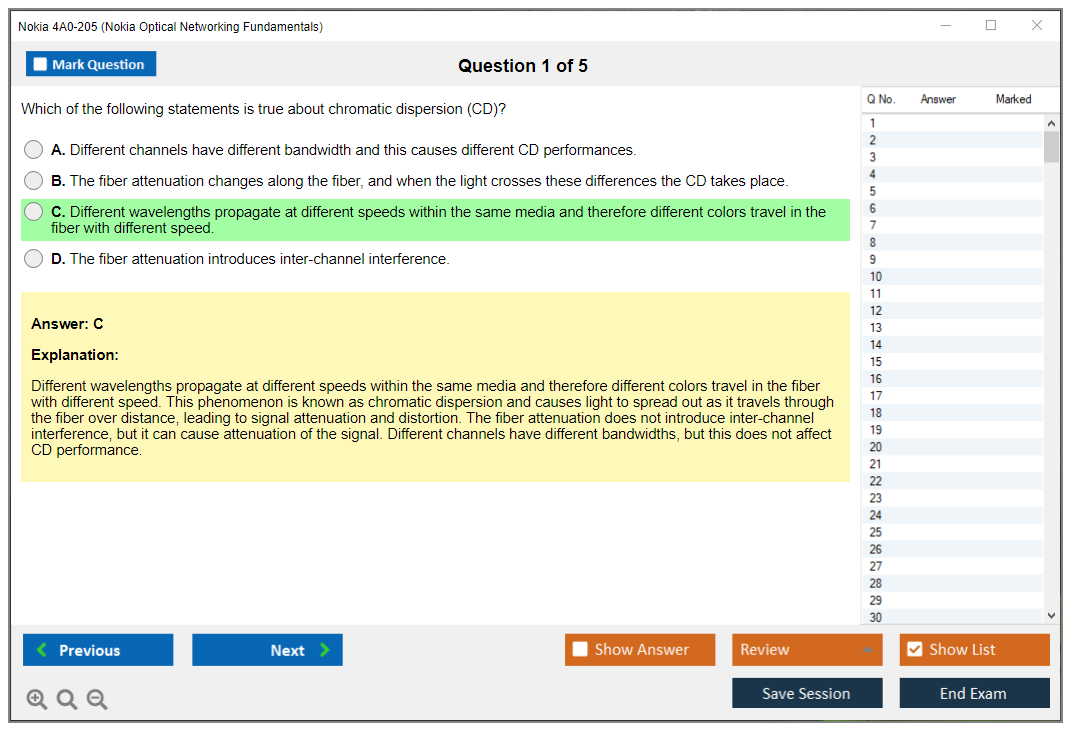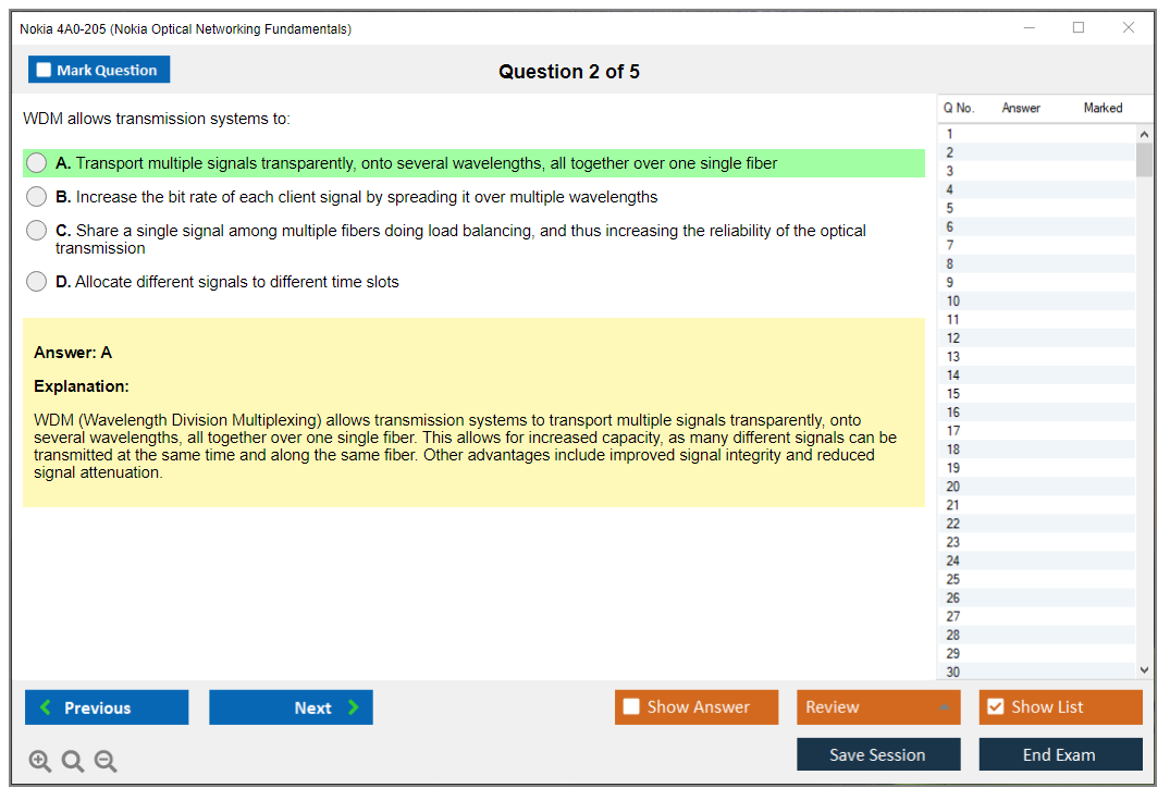 The Nokia 4A0-205 (Nokia Optical Networking Fundamentals) Exam is designed to test the knowledge and skills related to optical networking principles, technologies, and Nokia's specific optical networking products and solutions.