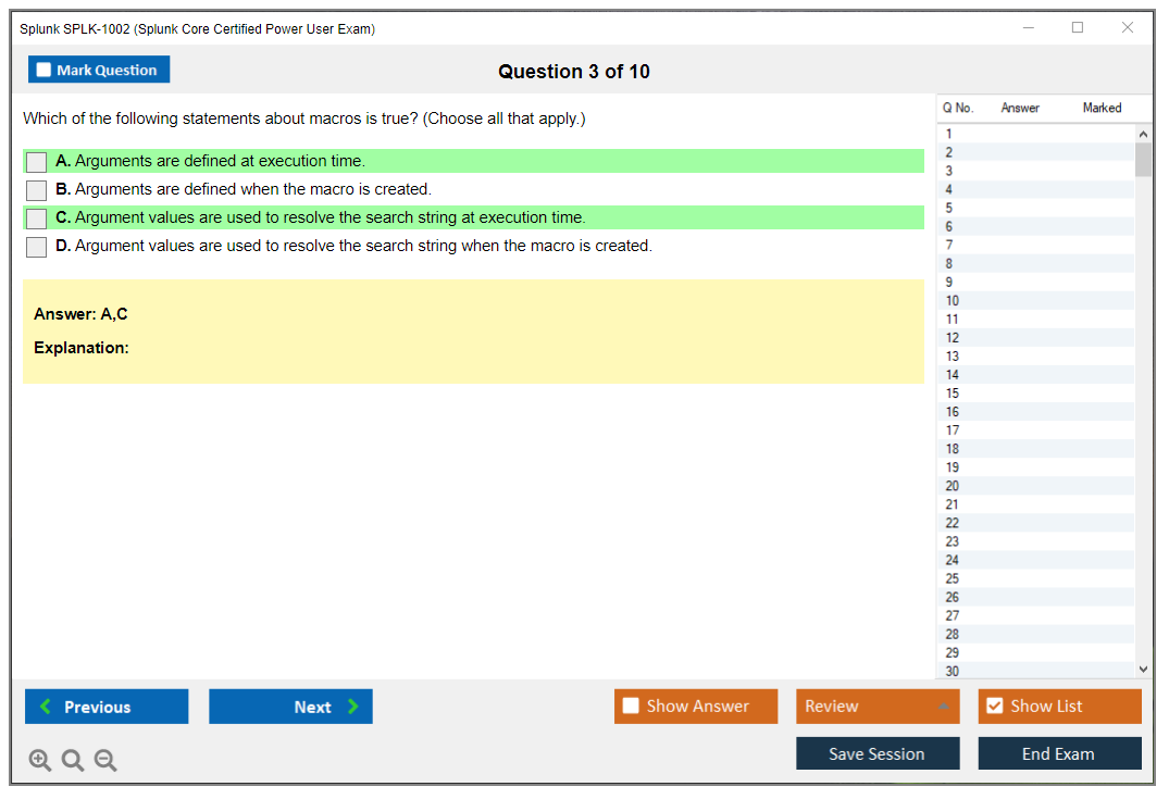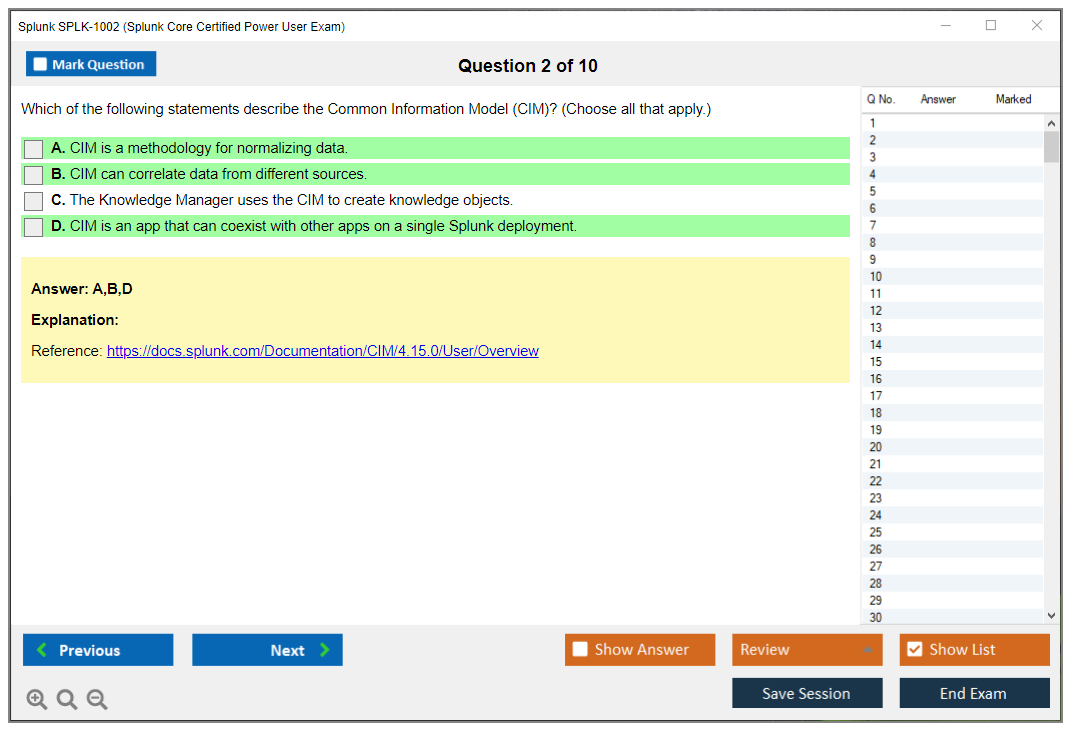 The Splunk SPLK-1002 (Splunk Core Certified Power User) Exam is designed to evaluate a candidate's knowledge and skills in using Splunk software for searching, monitoring, and analyzing machine-generated big data through a web-style interface.